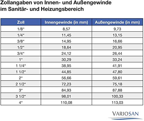 Binnendraad: 1/2″ (19 mm) / buitendraad: 3/4 inch (26 mm) / tussenmaat (wanddikte): 1 tot 18 mm