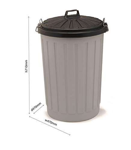 Specification: Addis B766GRY Outdoor ronde vuilnisbak met afsluitbaar deksel, grijs/zwart, 90 liter