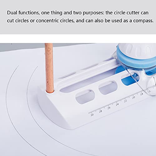Veilig en nauwkeurig. Het verborgen ontwerp van het lemmet beschermt de gebruiker, met name kinderen. Op de trimmer gedrukte heldere schalen voor nauwkeurig meten, eenvoudig en veilig snijden, geen angst voor vingersneden. De draaibare en verstelbare cirkelsnijder kan cirkels met een diameter van 3 inch tot 11,4 inch snijden.