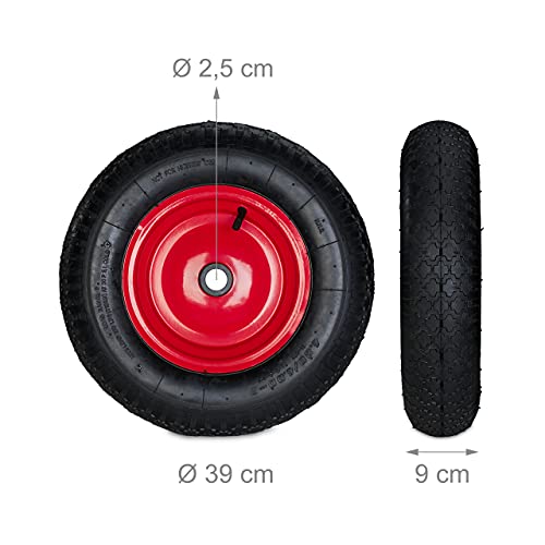 Specification: Relaxdays Kruiwagenwiel 4.80 4.00-8, luchtbanden, stalen velg, 3 adapters, reservewiel kruiwagen, tot 120 kg, zwart-rood