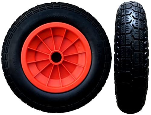 SYTZTOOLS 14″ PACK VAN 2 ORANJE SOLID PUNCTURE PROOF 3.50-8 WIELBARROW WIEL 35MM BORE