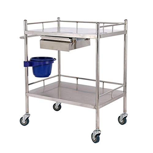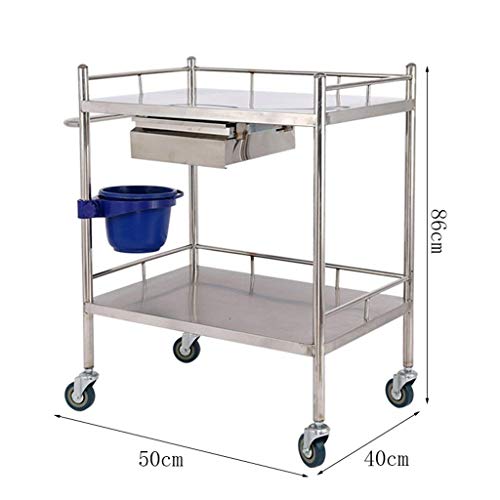 YASEking Karretje – Dubbele Roestvrij staal Medische Kar Verandering Geneeskunde Voertuig Instrument Vier Wiel…