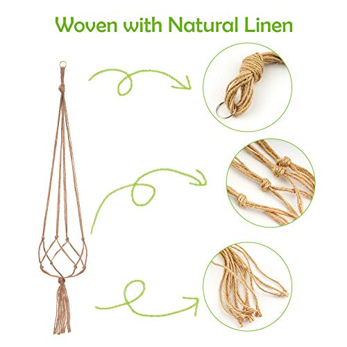 Handgeweven touw: de plantenhangers zijn gemaakt van natuurlijk materiaal jute, met de hand geweven met eenvoudig ontwerp, niet gemakkelijk te vervormen, corrosiebestendigheid, sterk en duurzaam. Geschikt voor vele decoraties.