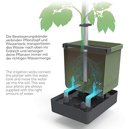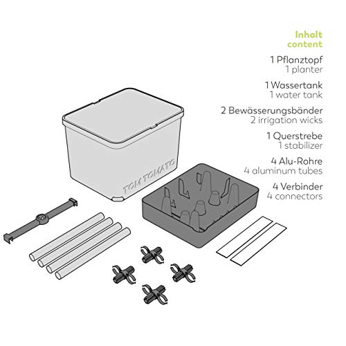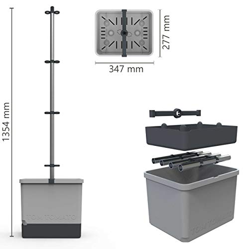 Specification: Tom Tomato – tomatpot – 4,5 L watertank irrigatiesysteem – klimhulp – bevestigingshaken – 20 L grondvolume – klimplanten…
