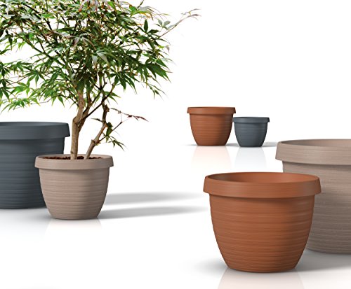 Lichte plantenbak in landelijke stijl van hoogwaardig kunststof voor tuin en balkon, natuurlijke look, praktische brede rand.
