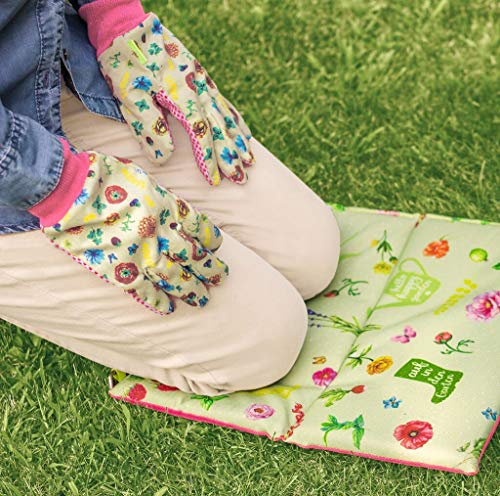 Met dit opvouwbare kniekussen in bloemendesign hoef je je niet meer met vlekken van gazon, aarde of ander vuil op de kleding te kloppen.