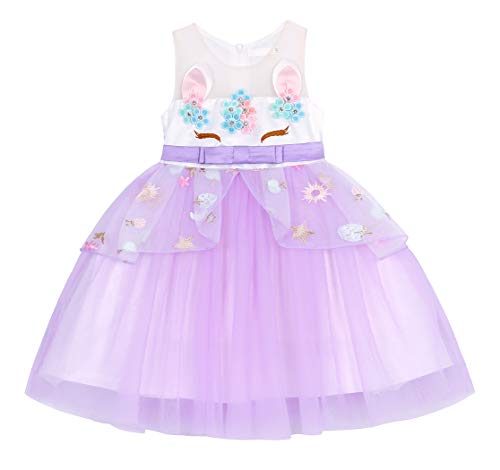 Specification: AmzBarley Meisjes Eenhoorn Feestjurk Tule Bloemen Prinses Jurk Kids Halloween Verjaardag Avond Optocht Fancy Dress Up…